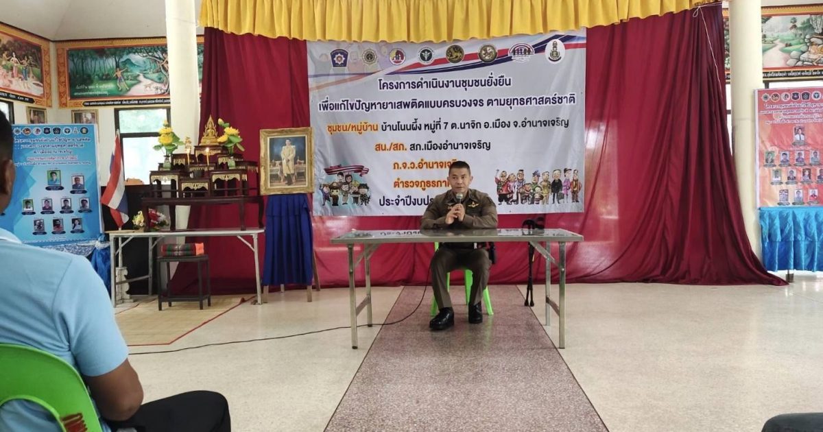 ได้ทำการเปิด “โครงการชุมชนยั่งยืนเพื่อแก้ไขปัญหายาเสพติดแบบครบวงจร ตามยุทธศาสตร์ชาติ” ประจำปี 2566 ณ ศาลาวัดบ้านโนนผึ้ง ม.7 ต.นาจิก อ.เมือง จ.อำนาจเจริญ