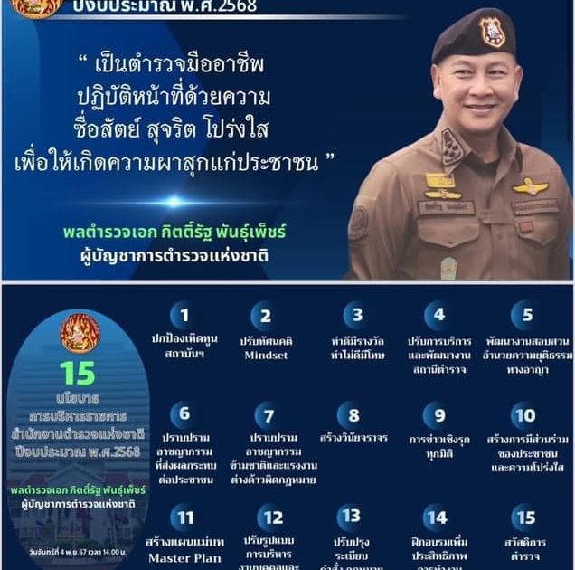 ผู้บัญชาการตำรวจแห่งชาติได้มอบ 15 นโยบายหลัก เน้นหนัก และเร่งด่วน ดังนี้