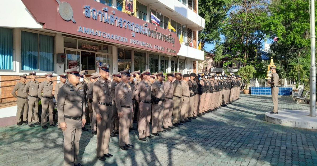 พ.ต.อ.สุพล ร่วมสุข ผกก.สภ.เมืองอำนาจเจริญ พร้อมด้วยข้าราชการตำรวจ สภ.เมืองอำนาจเจริญ เข้าแถวเคารพธงชาติ สวดมนต์ไหว้พระ กล่าวอุดมคติตำรวจ กล่าวคำสัตย์ปฏิญาณตน ชี้แจงภารกิจข้อราชการ ตรวจทรงผม เครื่องแบบทำความสะอาดบริเวณรอบสถานีและอบรมปล่อยแถว หน้าสภ.เมืองอำนาจเจริญ