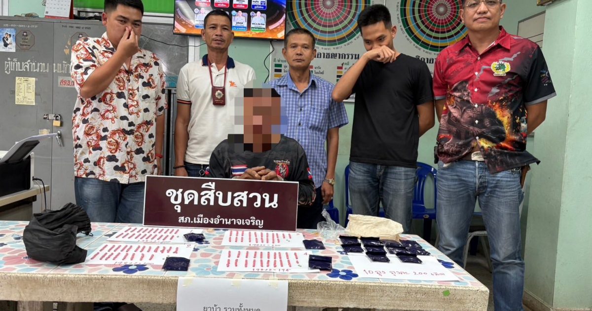 ข้อหา : “จำหน่ายซึ่งยาเสพติดให้โทษประเภท 1 (เมทแอมเฟตามีนไฮโดรคลอไรด์) โดยมีไว้เพื่อจำหน่ายโดยไม่ได้รับอนุญาตอันเป็นการกระทำเพื่อการค้าและก่อให้เกิดการแพร่กระจายในกลุ่มประชาชน ร่วมกันลักลอบเล่นการพนันออนไลน์ (สล็อต) พนันเอาทรัพย์สินกันโดยผิดกฏหมาย และเสพยาเสพติดให้โทษประเภท 1 (เมทแอมเฟตามีน) โดยฝ่าฝืนต่อกฎหมาย”นำตัวส่งพนักงานสอบสวน สภ.เมืองอำนาจเจริญ เพื่อดำเนินการตาม กฎหมายต่อไป