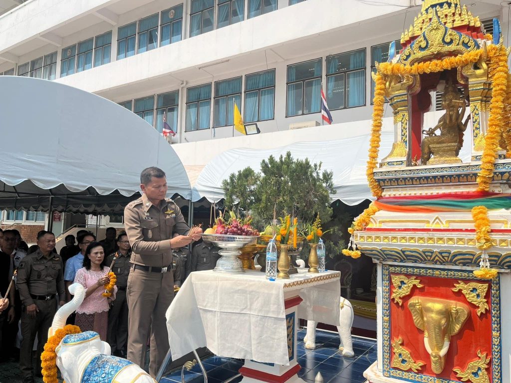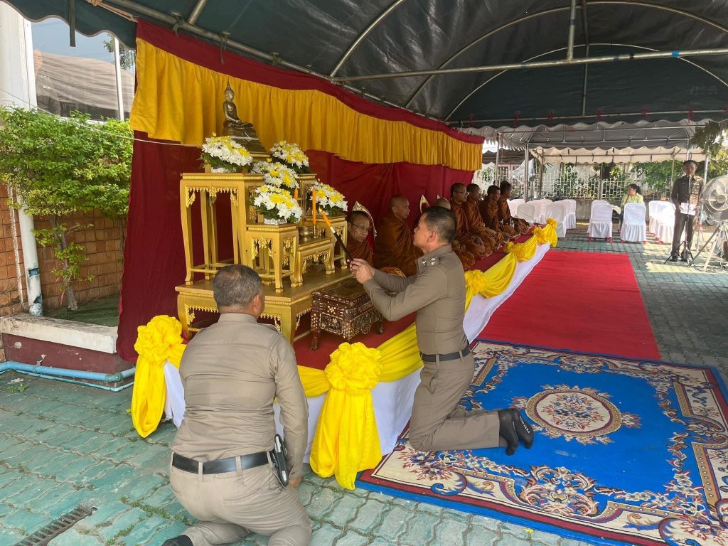 (6 เม.ย67)พ.ต.อ.สุพล ร่วมสุขผกก.สภ.เมืองอำนาจเจริญพร้อมด้วย-ข้าราชการตำรวจสภ.เมืองอำนาจเจริญ-กต.ตร.สภ.เมืองอำนาจเจริญ-แม่บ้านตำรวจร่วม พิธีบูชาพระพรมพิธีเจริญพระพุทธมนต์และถวายภัตตาหารเพลณ สภ.เมืองอำนาจเจริญ