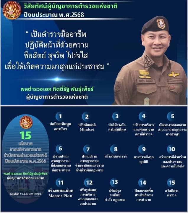 พล.ต.อ.กิตติ์รัฐ พันธุ์เพ็ชร์ ผู้บัญชาการตำรวจแห่งชาติ สั่งการตำรวจทั่วประเทศ กำชับป้องกัน ปราบปรามอ